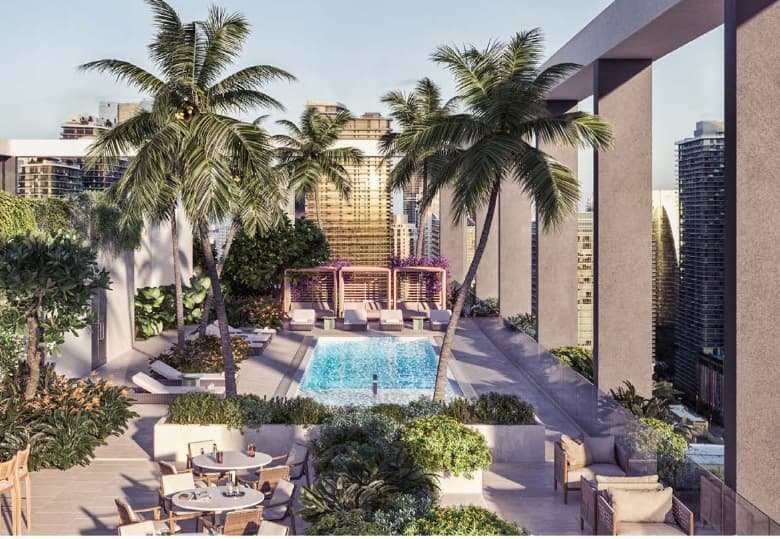 Bienvenido a la vidaen Brickell Center579 estudios, apartamentos de una y dos habitaciones completamente amueblados35 pisos de residencias de diseño4000 pies cuadradosAmplio vestíbulo y espacio de reunión