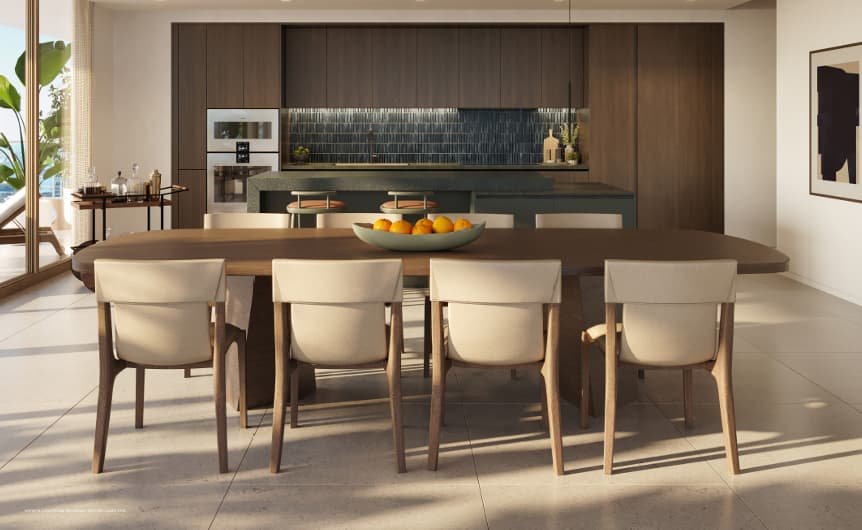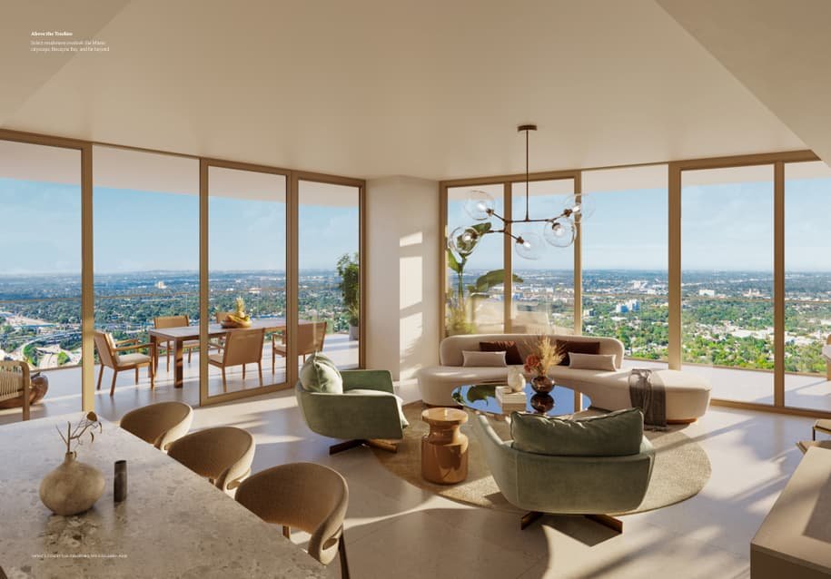 Diseñada por Yabu Pushelberg, la exuberante planta baja y las áreas de servicios están inmersas en un follaje inspirado en el paisaje tropical de Miami.