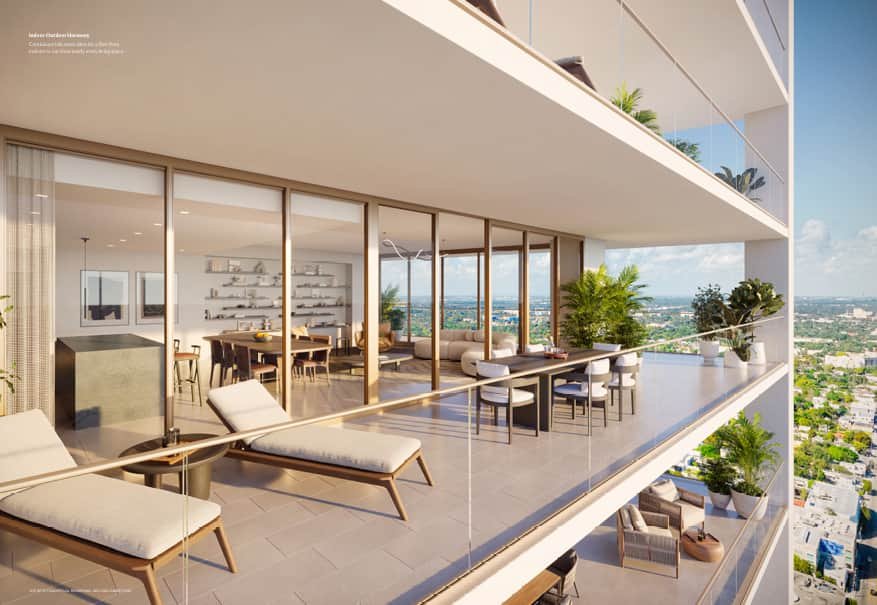 Torre de 49 pisos con 329 residencias de lujo, con fácil acceso a pie a tiendas y restaurantes en el Design District de Miami, Wynwood, Midtown y más.
